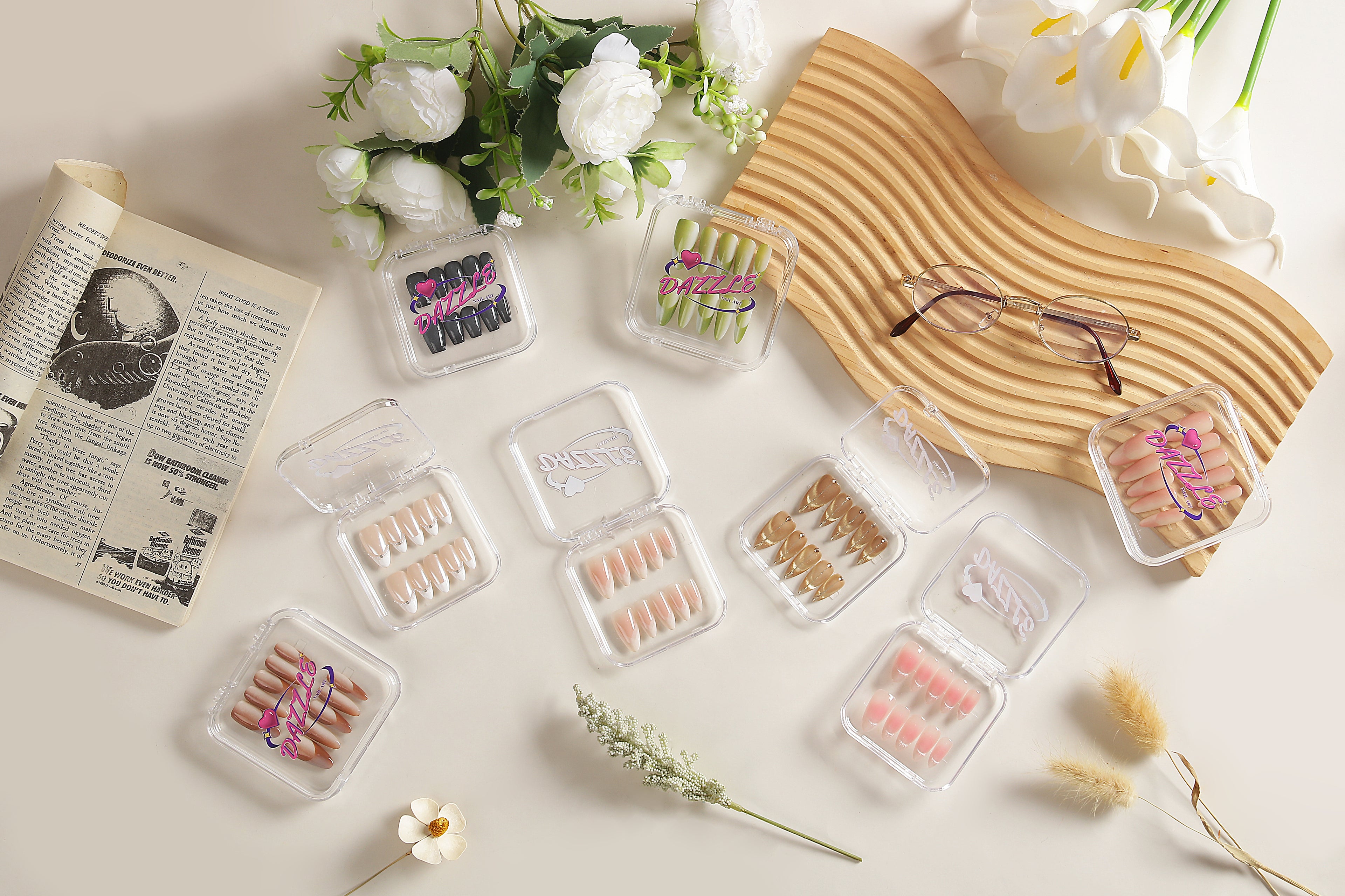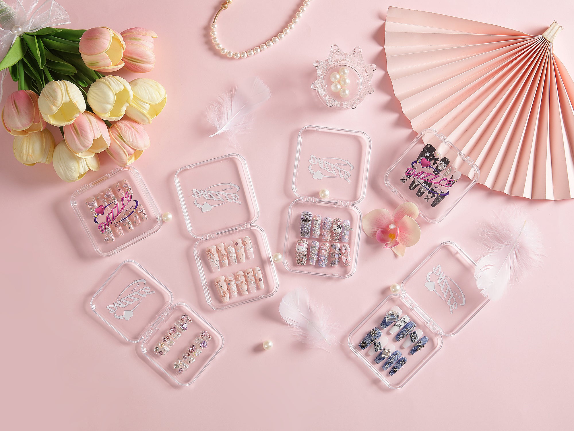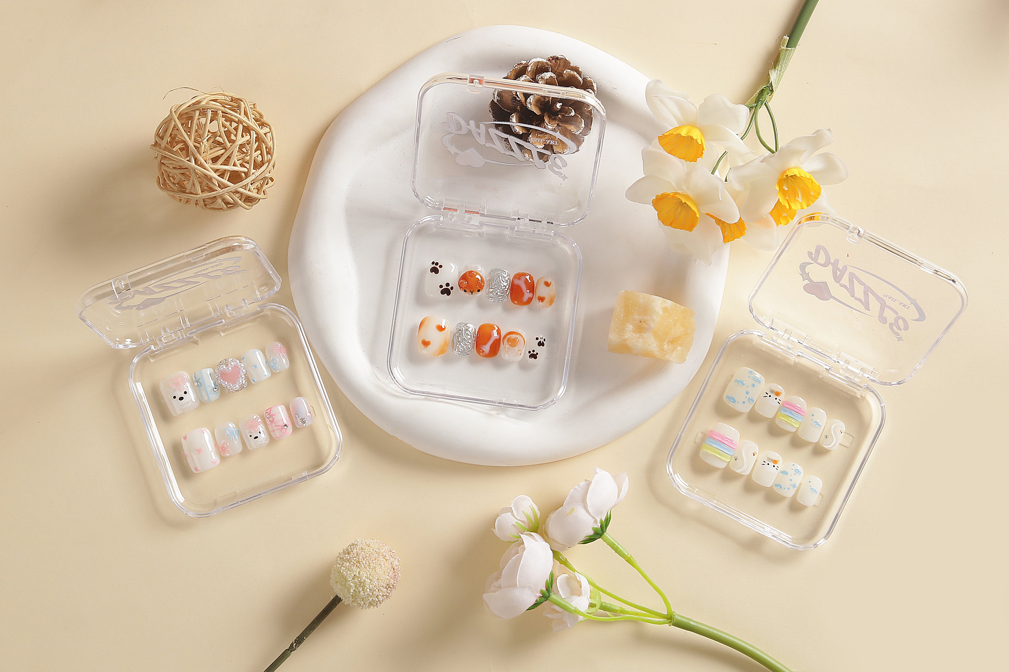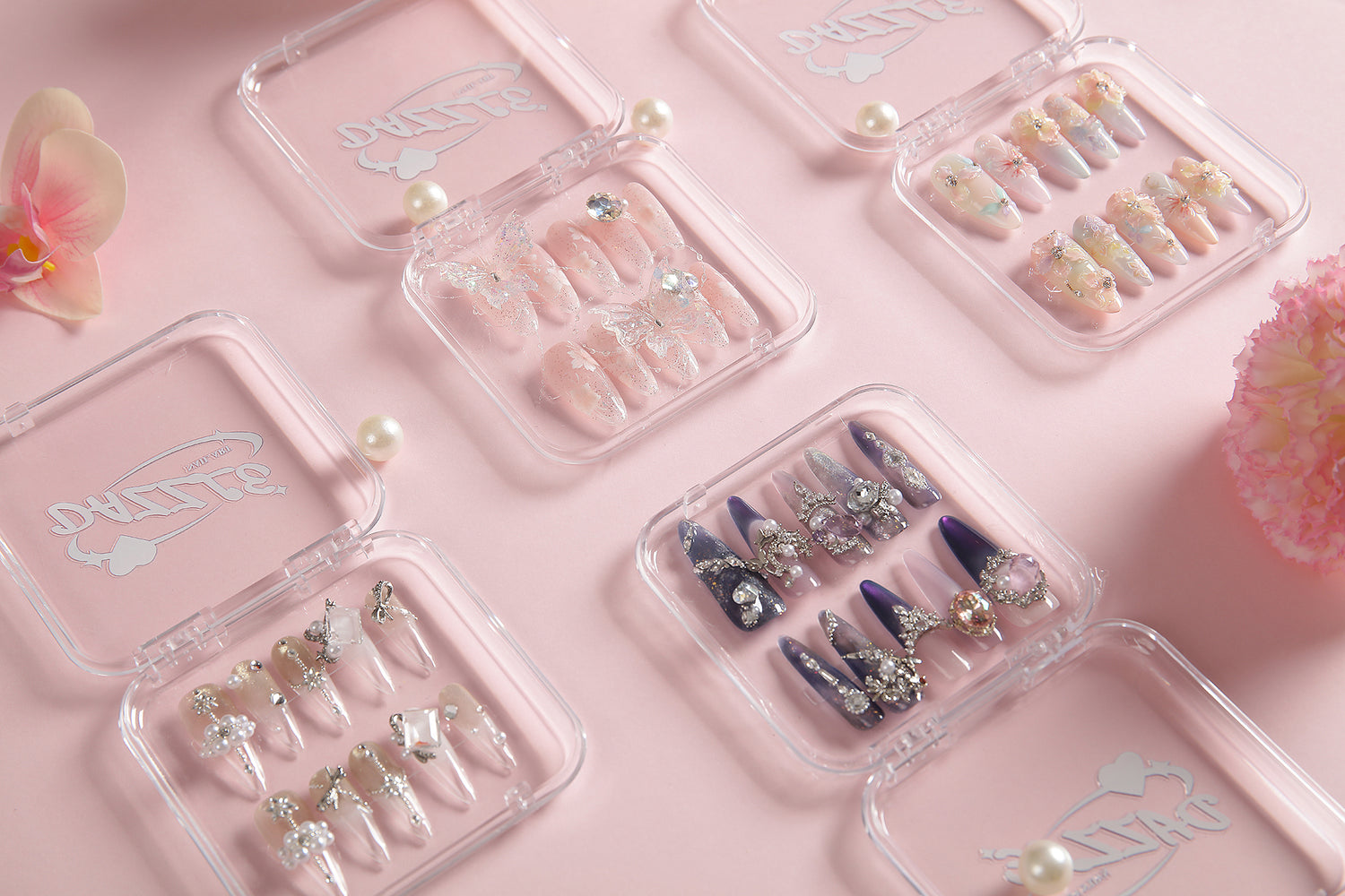 This depends on your nail prep and the adhesive you use, but typically they last 7-21 days with nail glue and 1–3 days with adhesive tabs.